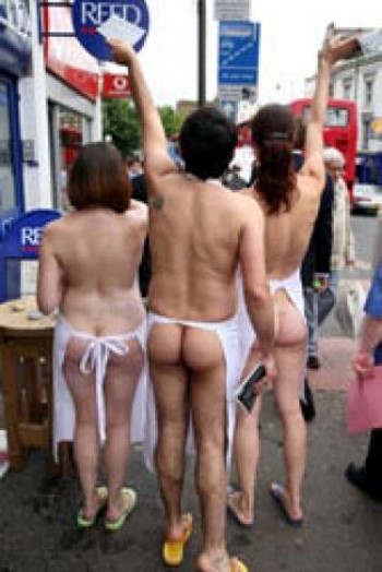 Пример партизанского маркетинга магазина "Lush" - до покупателей доносят идею "голых продуктов" раздев продавцов. Пример 1.