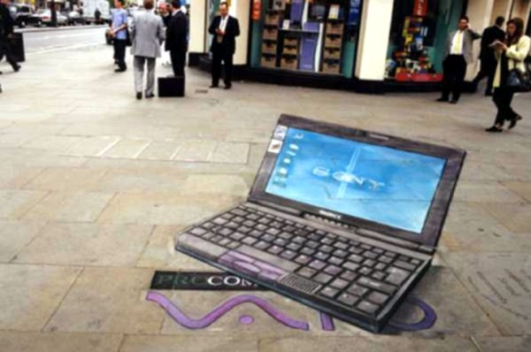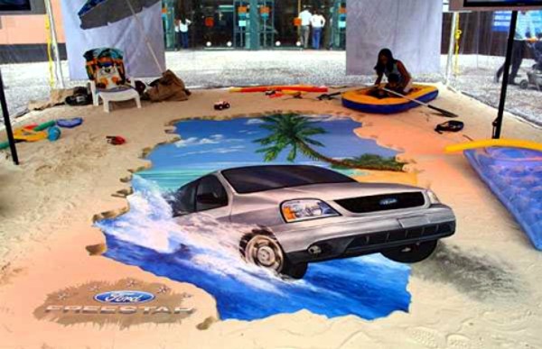 1. 3D рекламная графика на асфальте (3D графика, рисунки на асфальте):