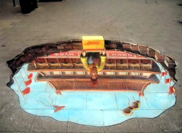 Нестандартная реклама компании "DHL" в городской среде (на асфальте). Пример 7.