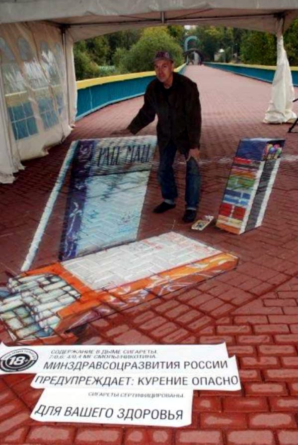 Пример партизанского хода для PR-проекта компании "British American Tobacco" в Москве на Андреевском мосту, создатель Julian Beever. Пример 2.