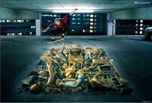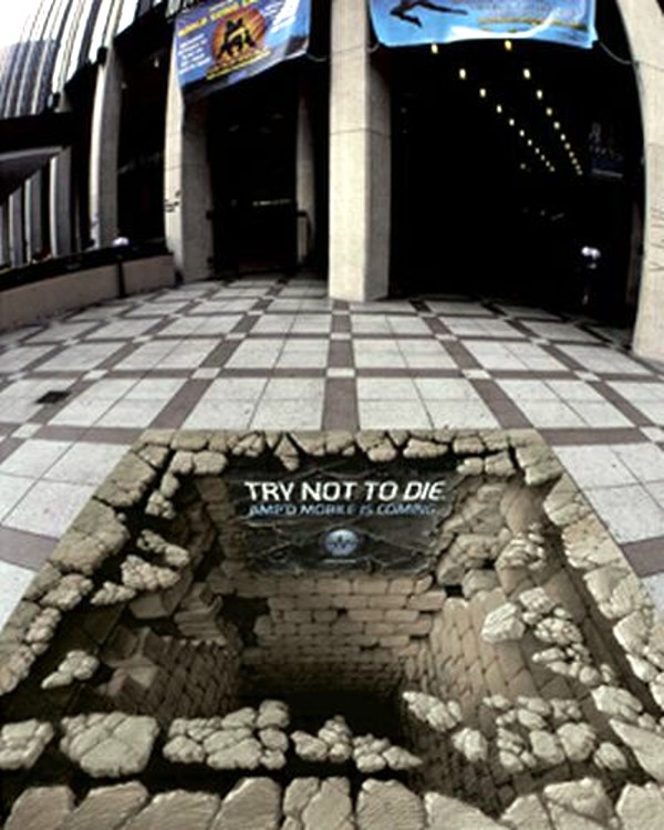 Пример нетрадиционной формы рекламы - 3D графика на асфальте. Пример 25.