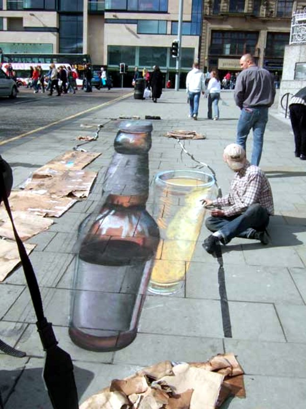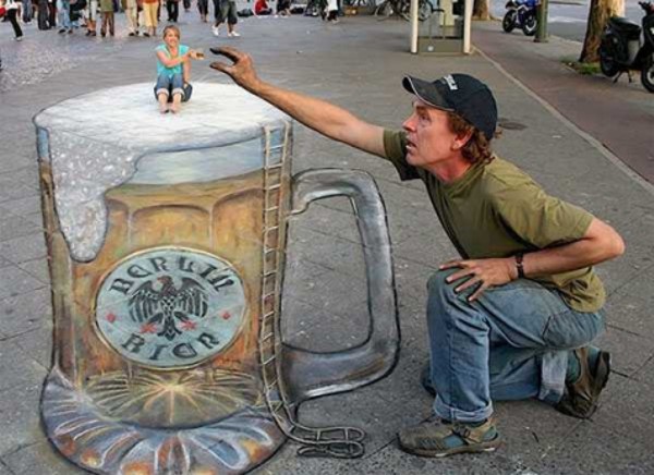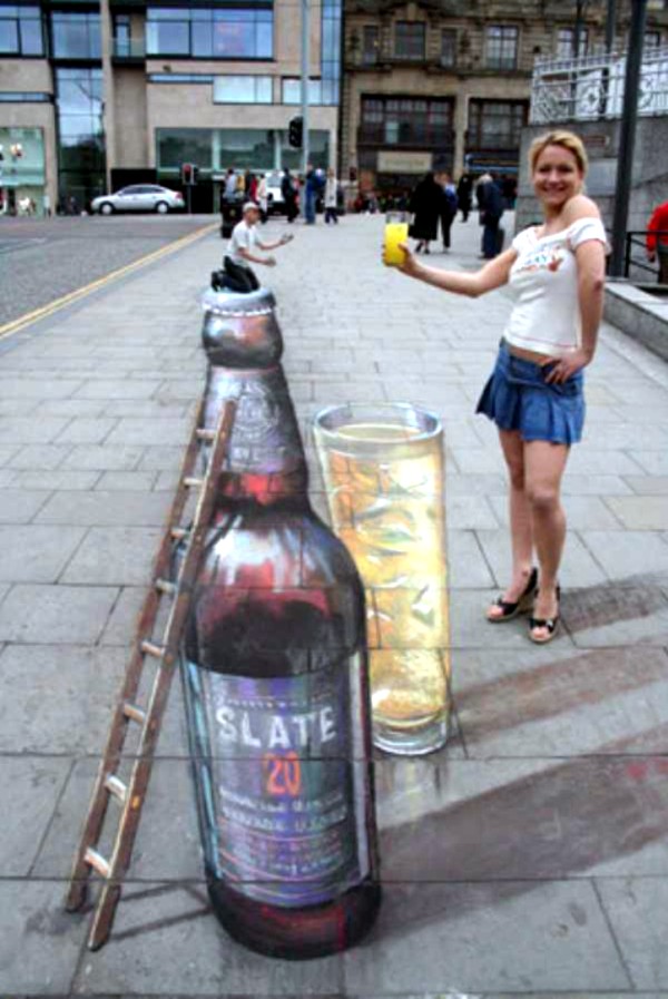 Партизанский маркетинг - 3D реклама пива на асфальте. Пример 6.