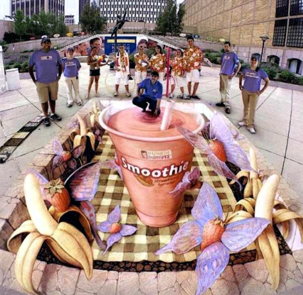 Пример нетрадиционной формы рекламы "Smoothie" - 3D графика на полу ТЦ. Пример 22.
