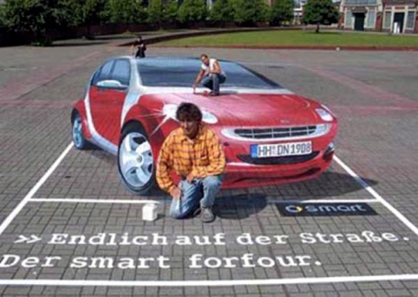Пример нетрадиционной формы рекламы - графика на асфальте - реклама "smart". Пример 17.