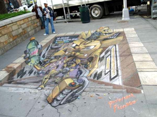Пример нетрадиционного рекламного хода - граффити на асфальте, приуроченного к выходу фильма «Трансформеры». Пример 3.