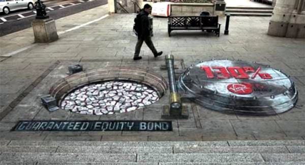 Centraal Beheer сделали себе имя на оригинальной, остроумной рекламе с неожиданными ходами. Однако, в случае с Джулианом Бивером они немного изменили своему новаторству — британский «живописец мелом по асфальту» придумал технику создания трехмерных и одновременно плоских изображений на основе искажения и перспективы в начале 90-х годов. За 17 лет творчества ради творчества Джулиана уже не раз привлекали и к рекламе разнообразнейших брендов — он даже в Россию с этой целью приезжал, не говоря уже о США, Великобритании, Франции, Бразилии и других стран с высочайшим уровнем креативности в рекламе.