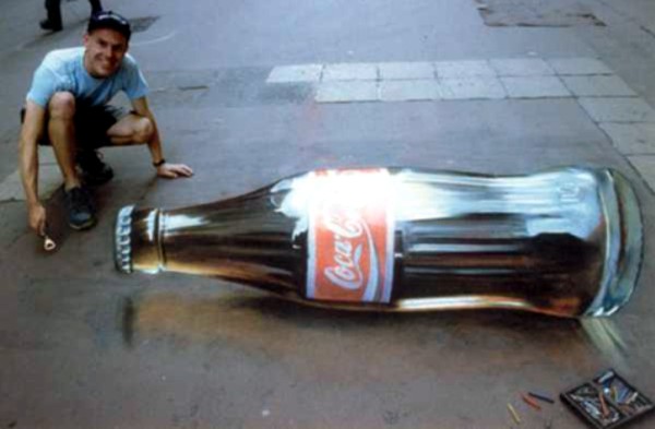 Пример нетрадиционной формы рекламы - 3D реклама "Coca-Cola" на асфальте от Дж. Бивера. Пример 5.