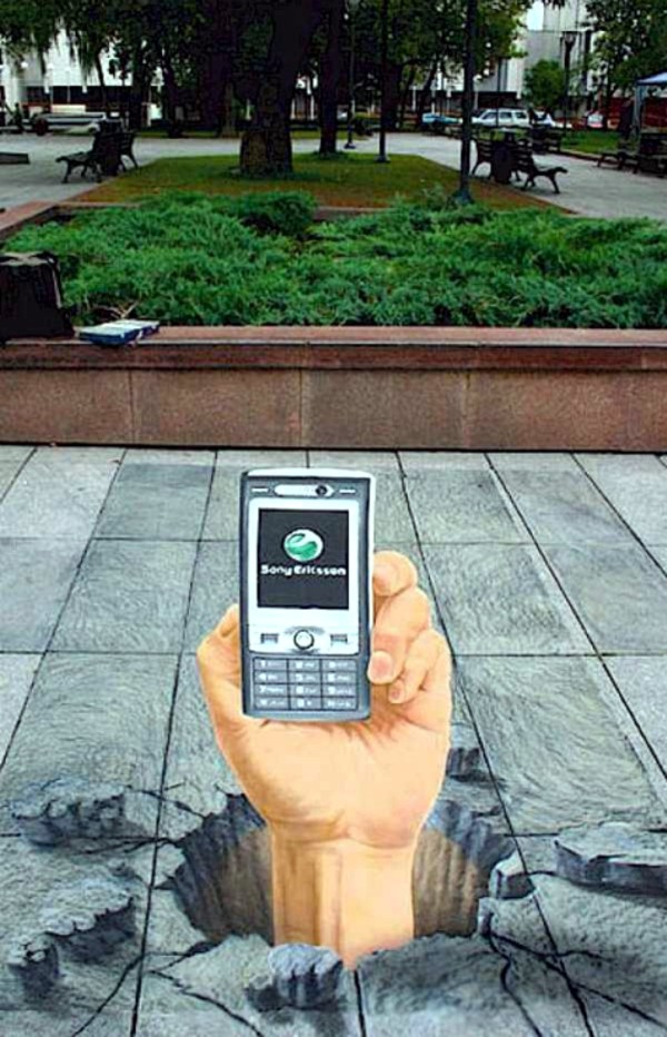 Партизанская акция - 3D реклама телефона "Sony Ericsson" на асфальте. Пример 23.
