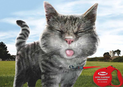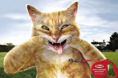 На этих принтах, созданных немецким агентством Scholz & Friends, нам показывают как кошки дразнят собак, показывая им рожи. Дело в том, что кошкам совершенно нечего бояться, ведь собаки пристегнуты на очень прочные поводки Flexi.