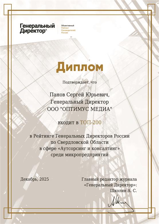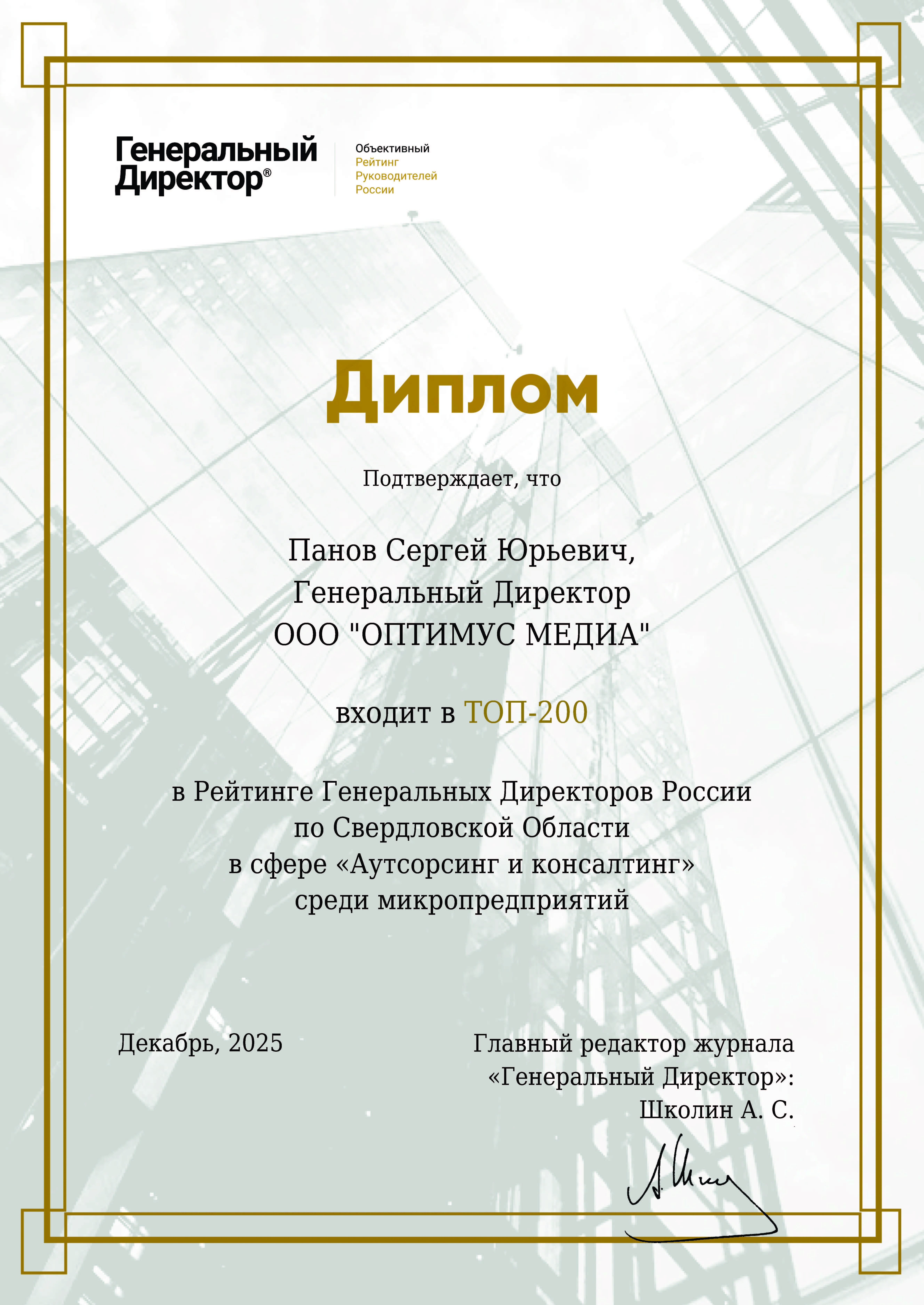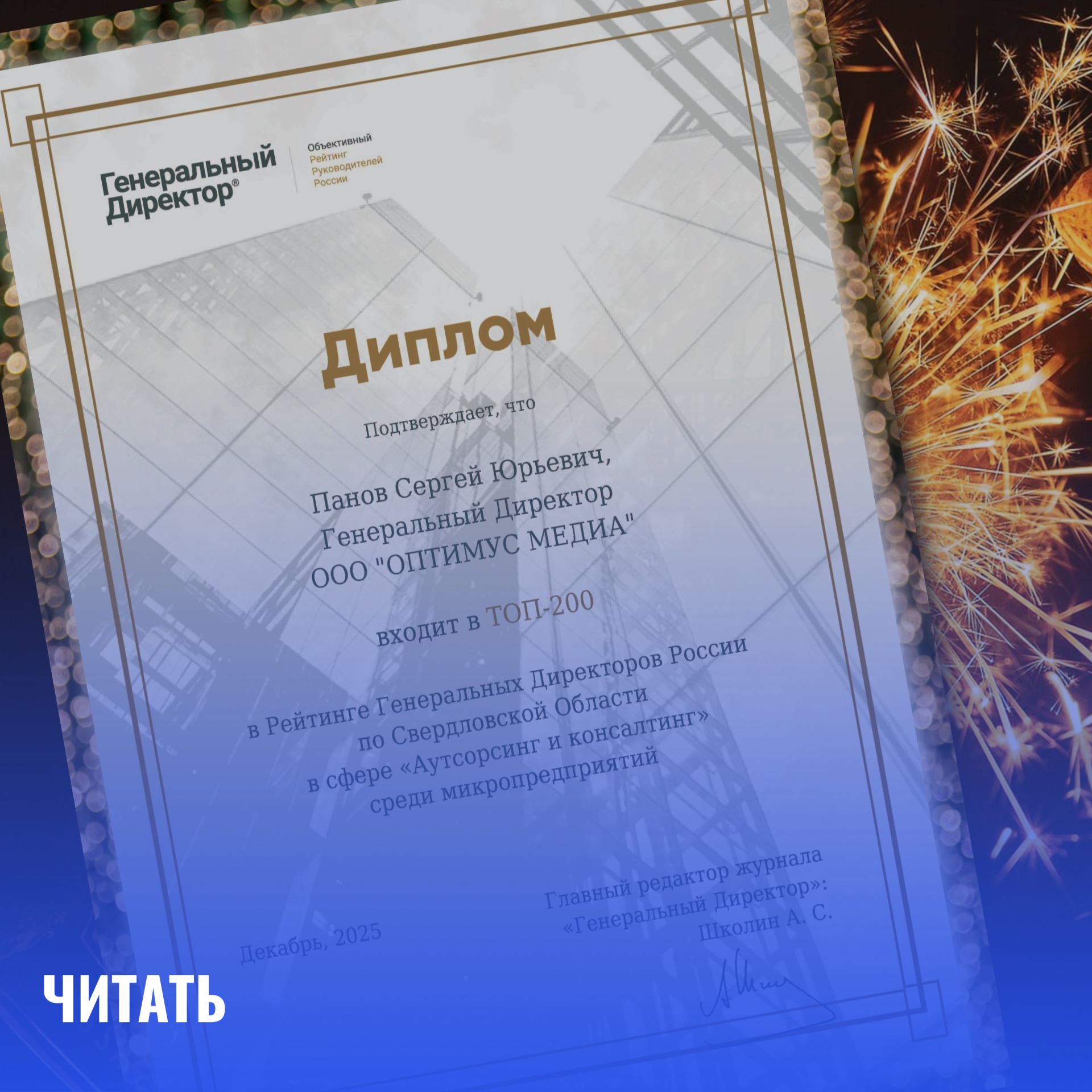 Наш генеральный директор вошел в рейтинг Топ-200 генеральных директоров России по Свердловской области.