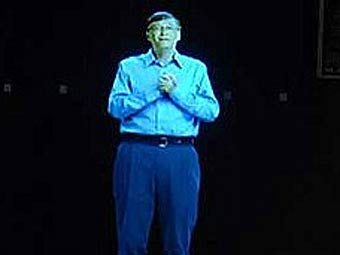 Голографический Гейтс высотой в 4,6 метра сорвал аплодисменты 400 IT-специалистов и произнес пятиминутную речь о чудесах компьютерной техники, записанную в Сиэтле две недели назад. Это первое голографическое выступление Гейтса.